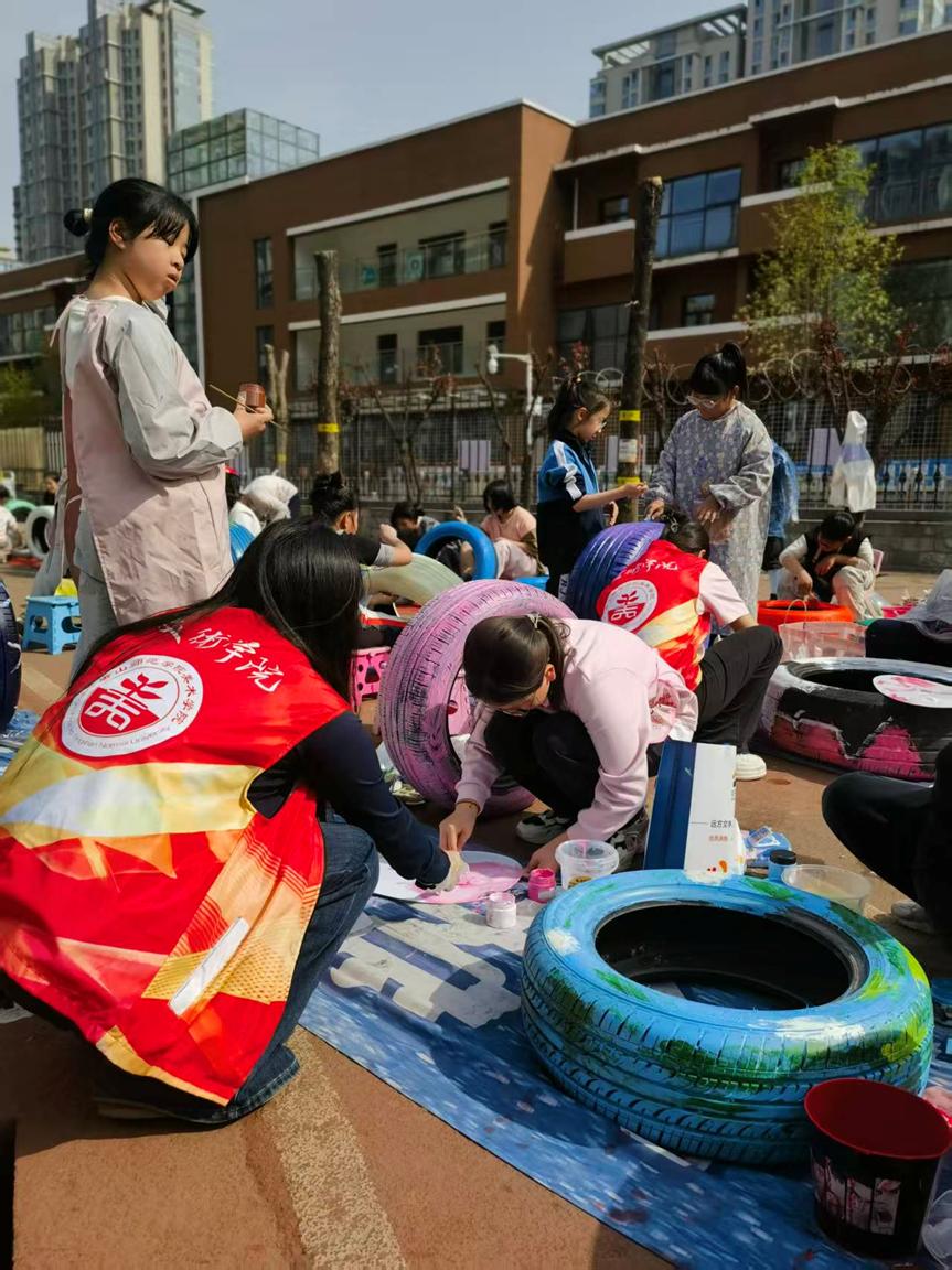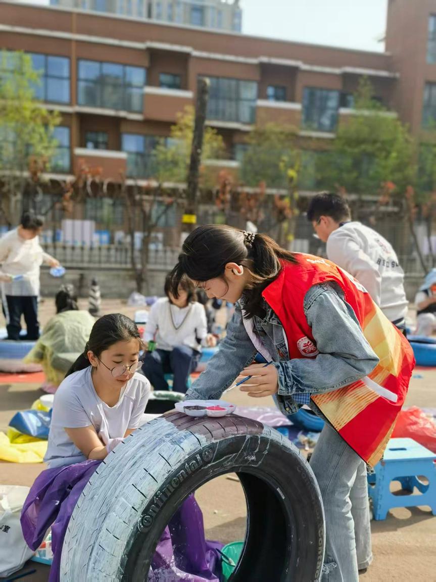 为践行美育精神,传递艺术温暖,4月21日,yl6776永利集团组织青年志愿者走进外国语小学,开展“色彩点亮童心,艺术美化校园”轮胎彩绘志愿服务活动,用创意与画笔为校园增添一抹灵动色彩。