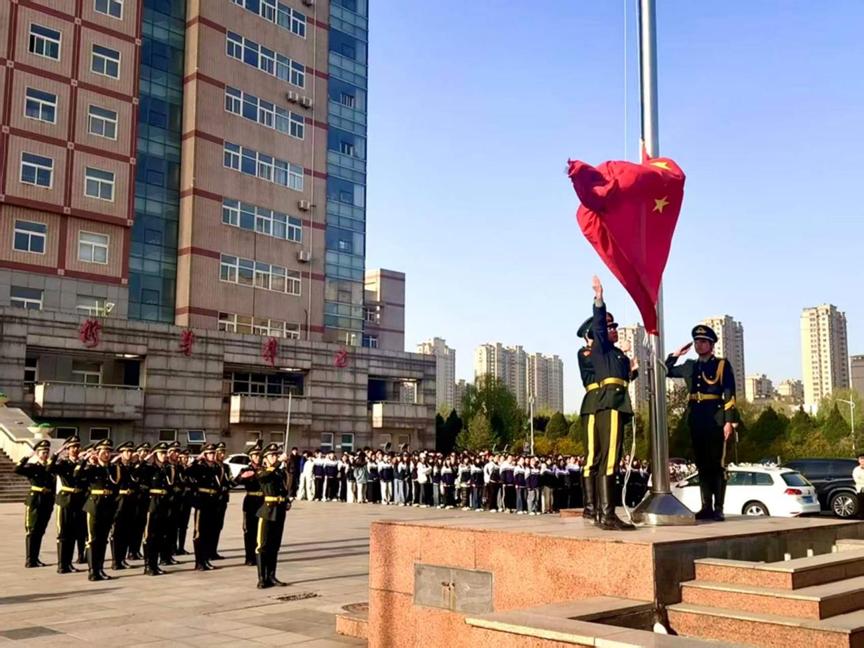 升旗仪式上,全体师生肃立注目,齐唱国歌,五星红旗冉冉升起。现场庄严肃穆,师生在仰望国旗中厚植家国情怀,凝聚奋进力量。