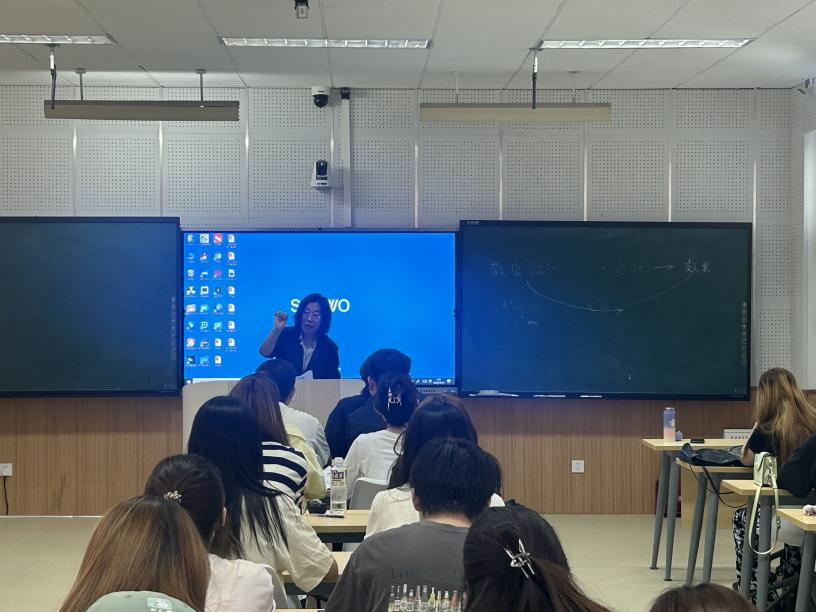 同时张教授针对学生面试试讲提出了三点建议:1.要有教学素养。2.要有教学逻辑。3.要有核心知识点的专业性。指导学生要学会身份转化,以“学科知识”为载体,以“育人”为目标。整个课堂学生全情投入,积极反馈,师生共同打造了一堂丰富有趣,且实用的课堂。