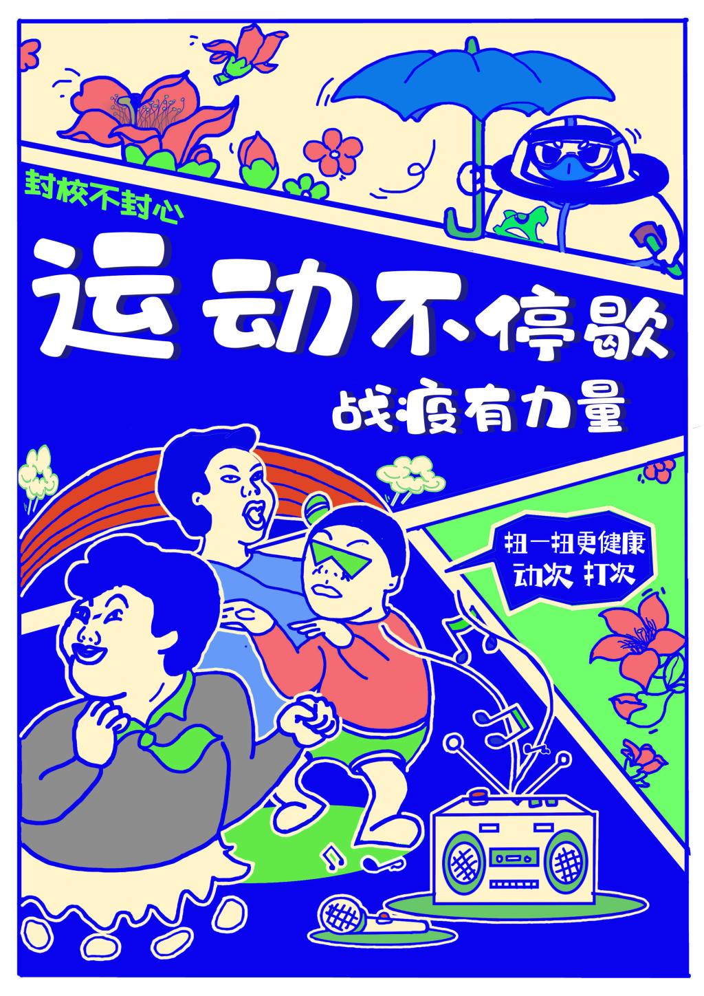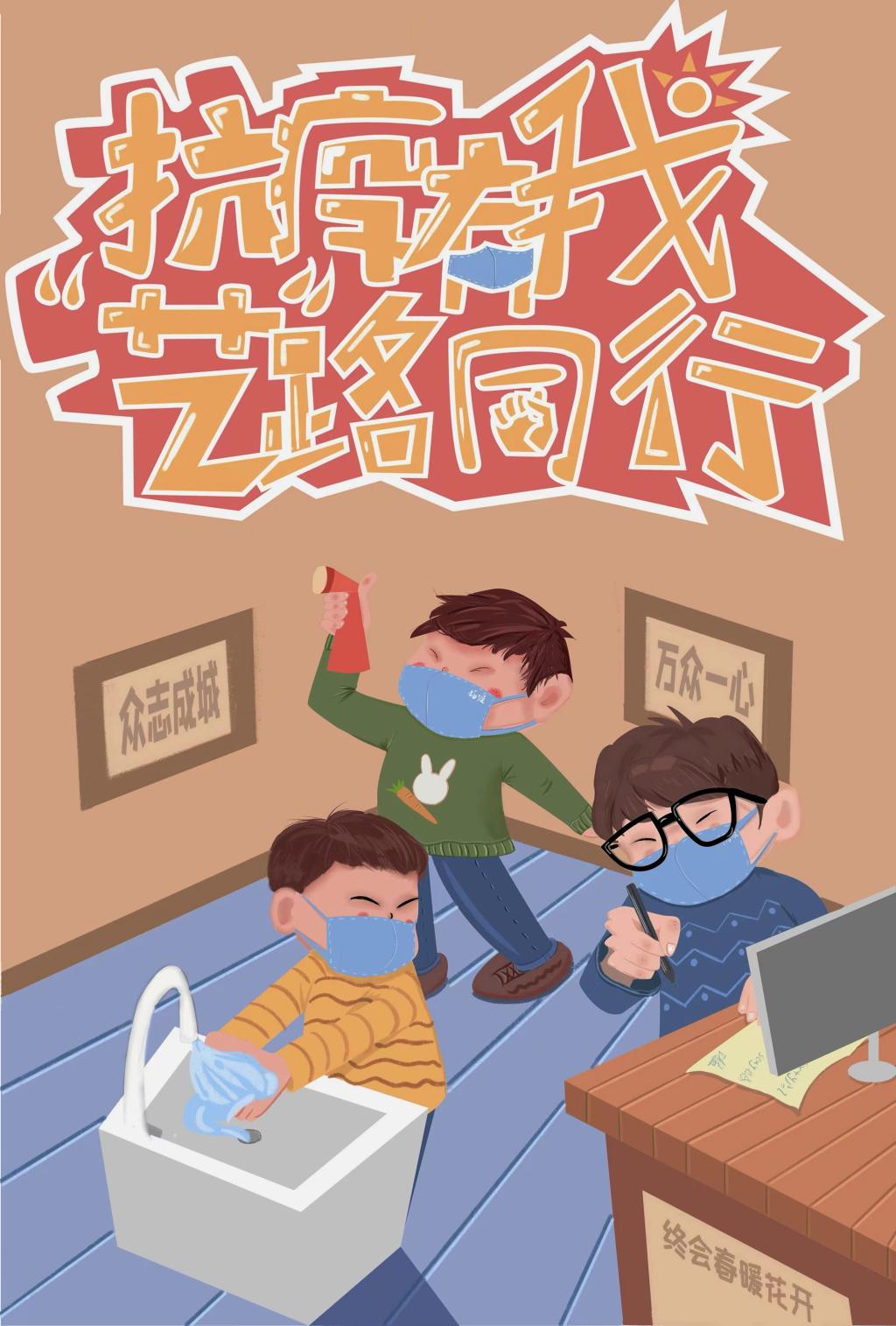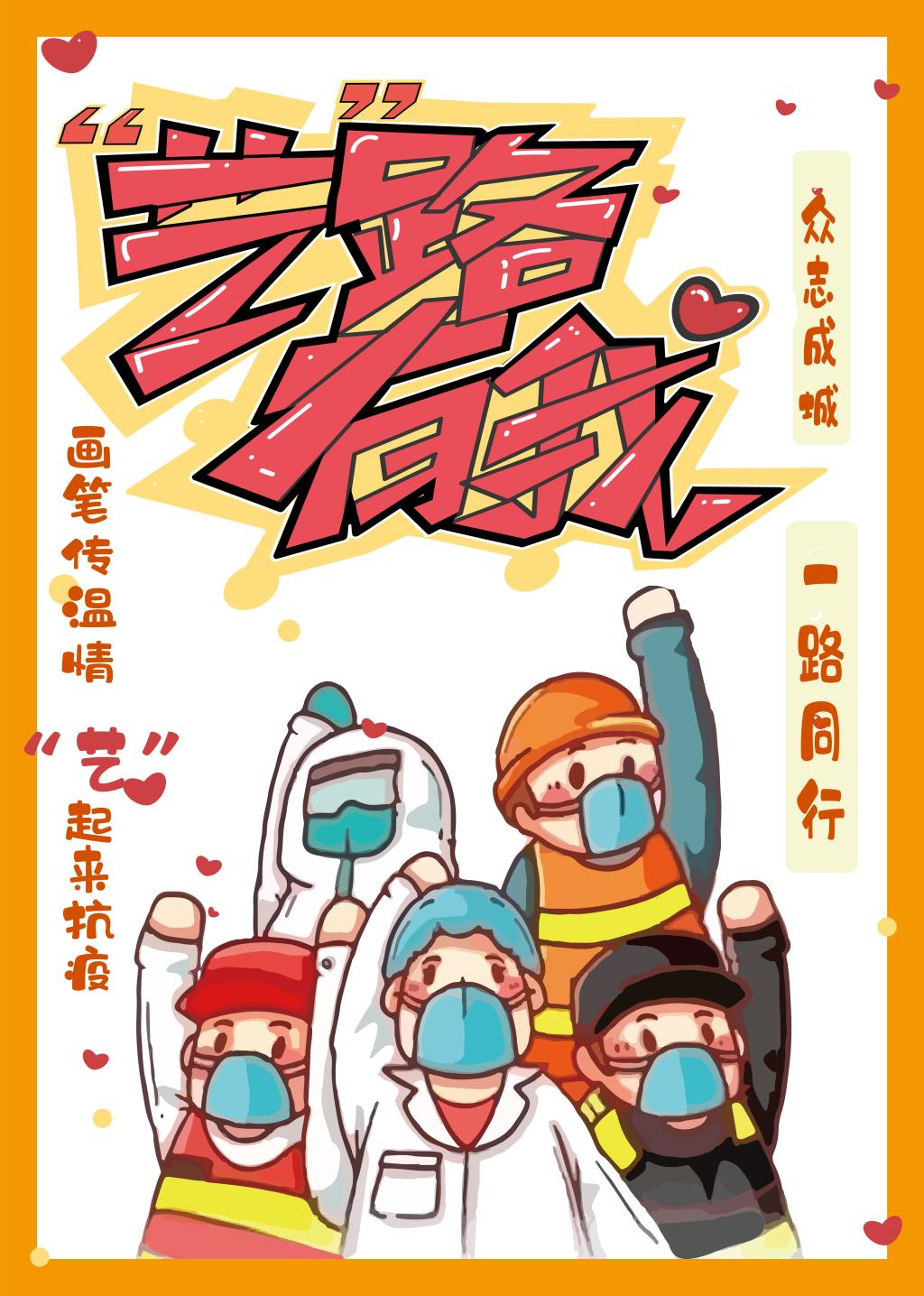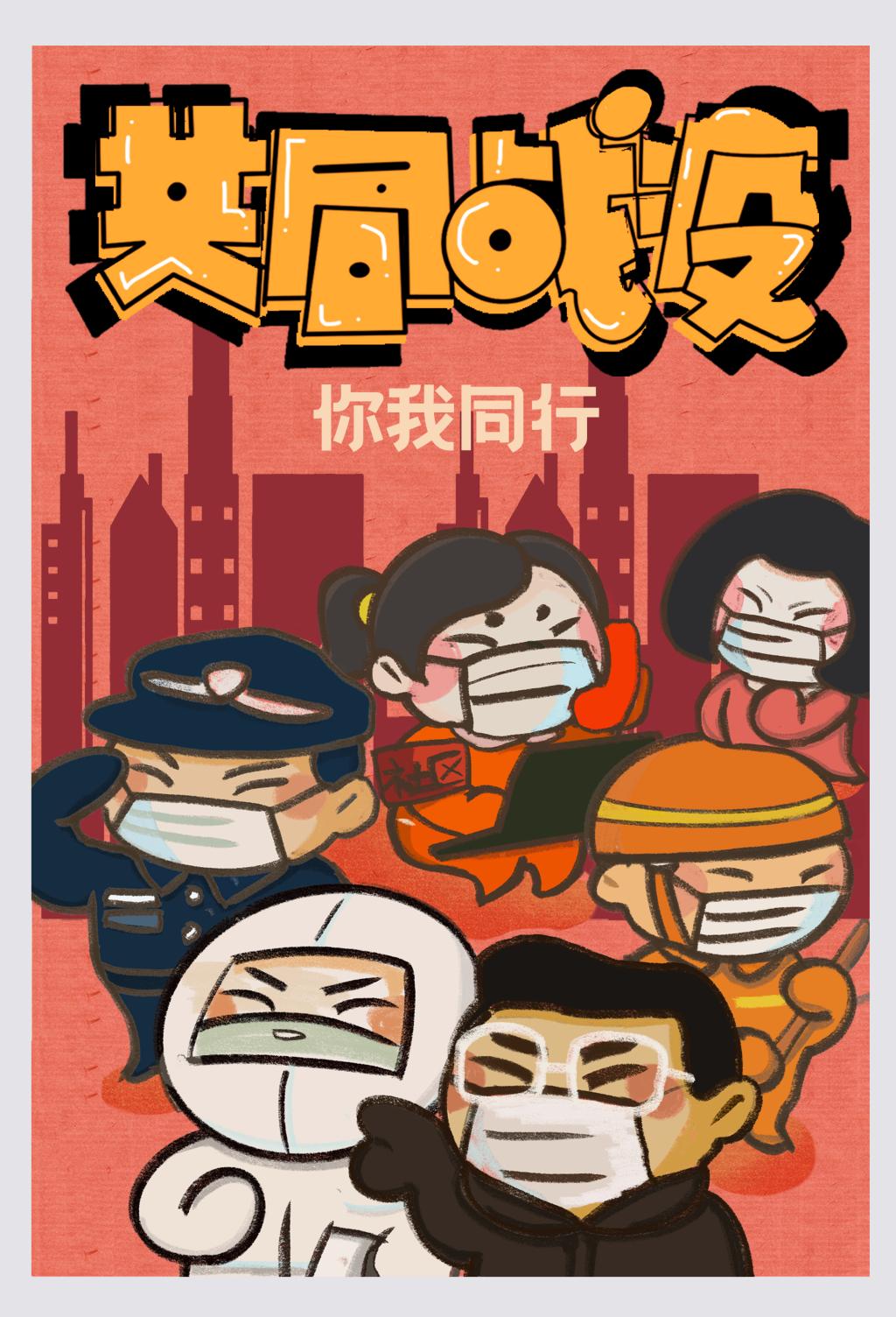 19视觉传达设计2班同学们结合专业课程学习,通过趣味性、夸张性的艺术表达形式,展现青年学子同心抗疫的意志决心,为疫情防控传递青春力量。(部分课程作业展示)