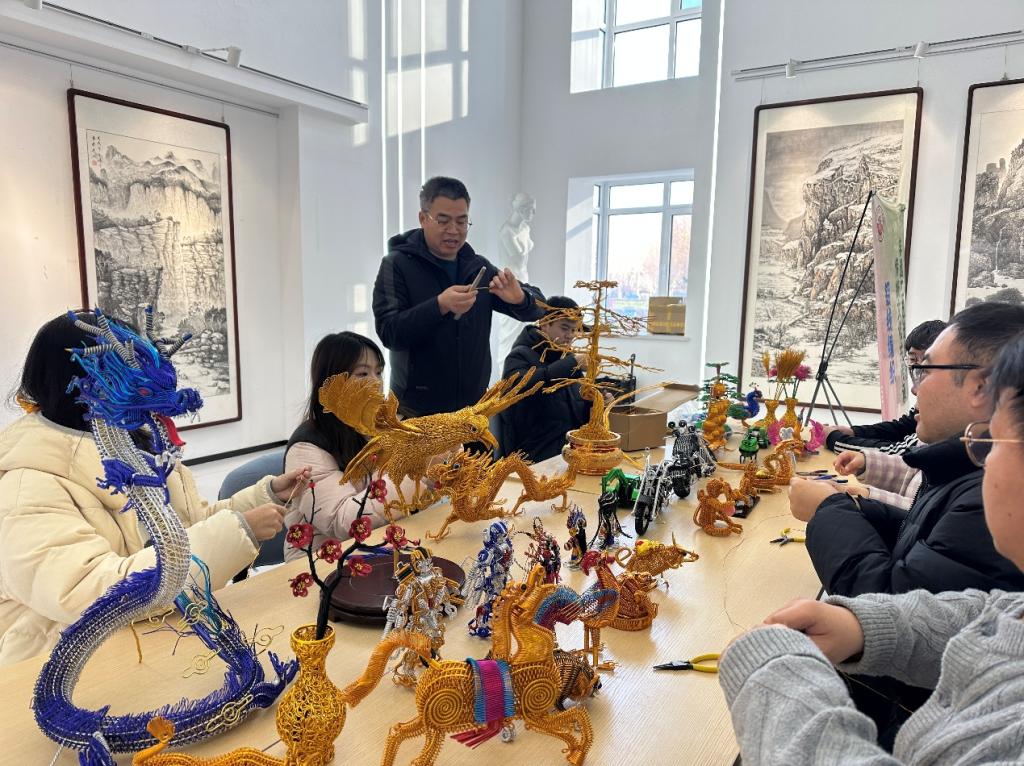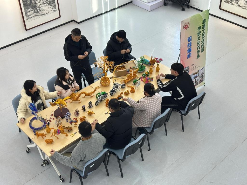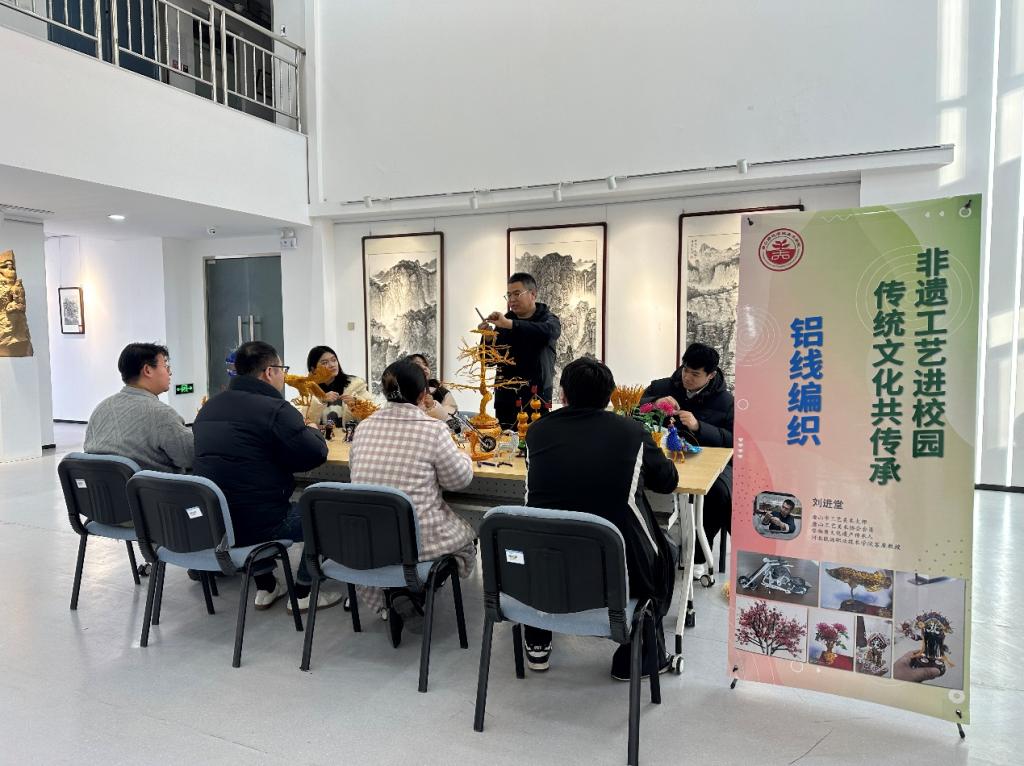 yl6776永利集团面向全校举办“非遗工艺进校园,传统文化共传承”传统文化进校园主题活动。此次活动特别邀请了唐山市工艺美术大师、非物质文化遗产传承人、铝线编制艺人刘进堂先生,为全校师生带来了一场精彩纷呈的铝线编制技艺展示与教学体验。
