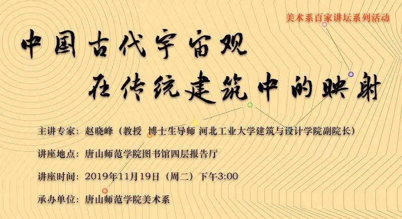 为提高美术系学生的专业设计水平和实践能力,2019年11月19日,我系邀请河北工业大学建筑与艺术设计学院副院长博士生导师赵晓峰教授来系做了《中国古代宇宙观在传统建筑中的映射》学术讲座,美术系张高志主任、图书馆馆长周进良以及部分师生到场聆听,讲座由教学秘书杨光老师主持。