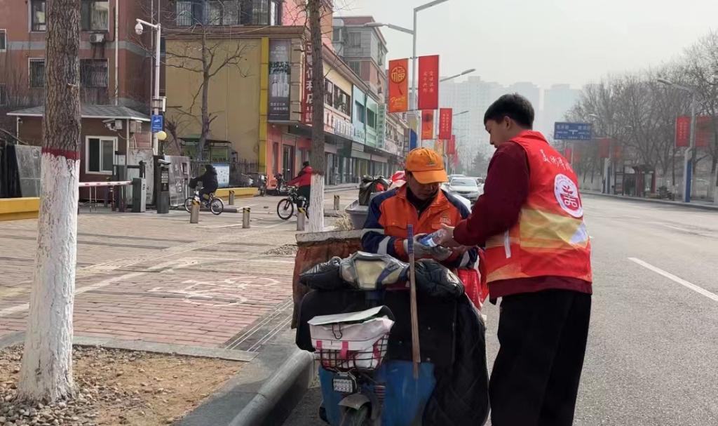 3月5日yl6776永利集团志愿者们沿着火炬路,龙富南道,华岩北路,为环卫工人们送去矿泉水,小小的矿泉水,饱含着广大学子们对一线工人的敬佩之心,温情的互动,让城市的初春更加温暖。