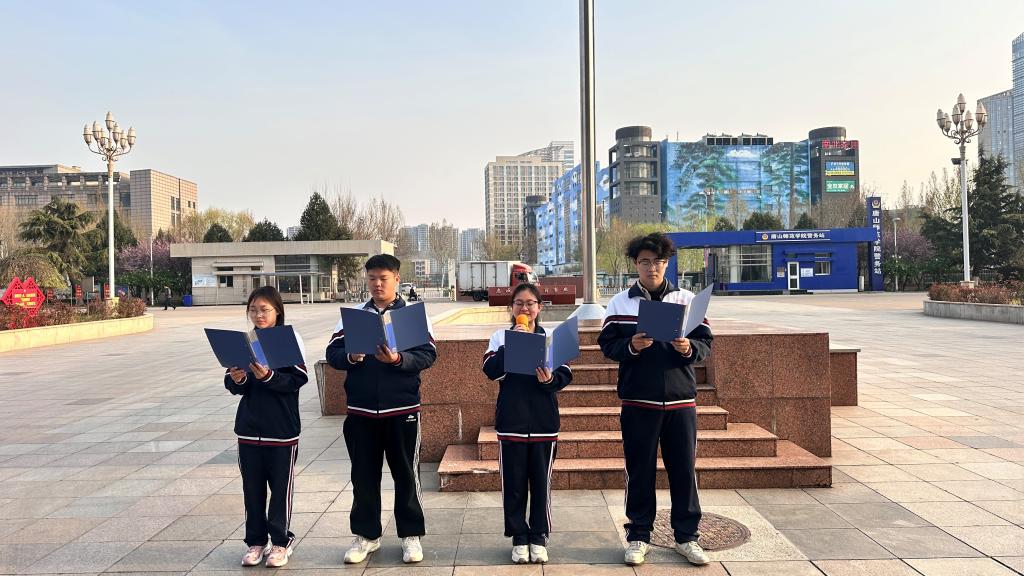 升旗仪式在雄壮的国歌声中拉开序幕,全体师生肃立注目,五星红旗冉冉升起。学生主持人李艺萌号召同学们:“以画笔记录时代发展,用艺术讴歌人民幸福,让创作与祖国同频共振!”随后,学生代表深情朗诵原创诗歌《中华颂》,“一笔一画总关情,一颜一色皆山河”的铿锵诗句,展现了中华文明的深厚底蕴与新时代的辉煌成就。