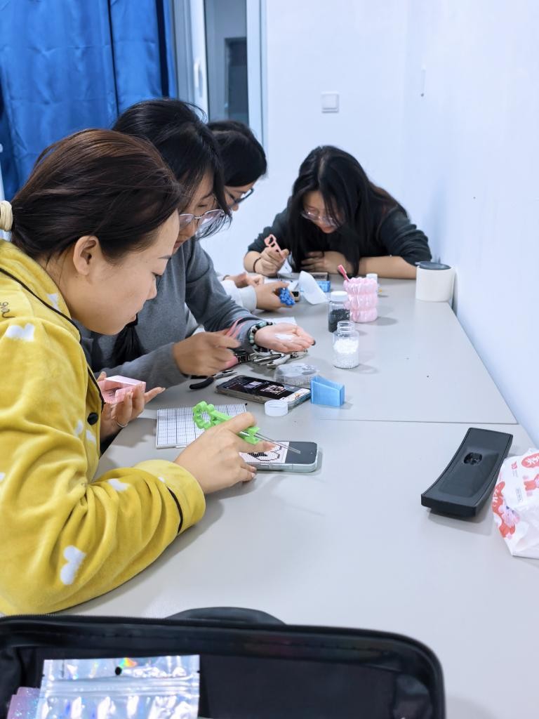 活动现场,同学们在轻松的氛围中挑选色彩丰富的拼豆,专注地进行创作。在动手拼接的过程中,大家暂时放下学业压力,沉浸式感受手工艺术带来的治愈与放松,彼此交流心得、分享创意,有效舒缓了入学以来的紧张情绪。此次活动将美育与心理调适相结合,让同学们在创意实践中放松心情、增进友谊,更快融入校园集体生活。