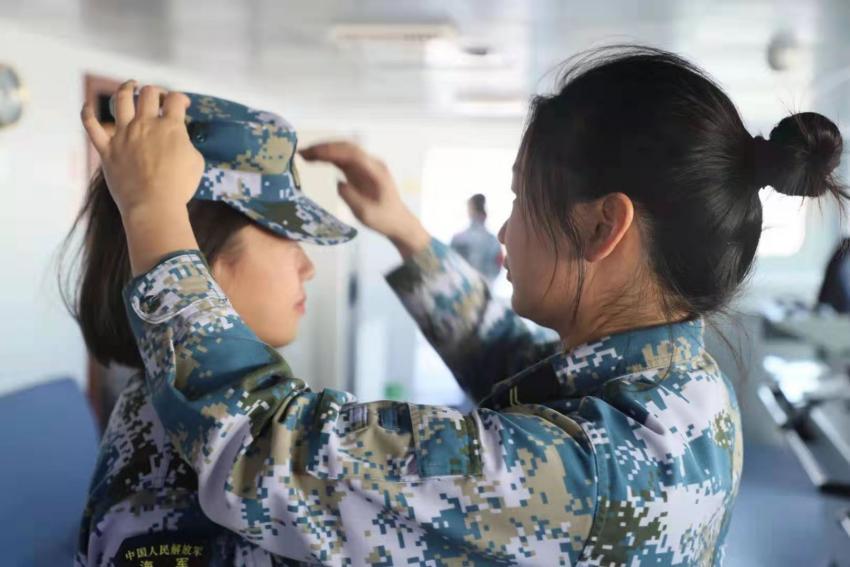 除了训练和任务,其实让人最头疼的还是舰艇在海面航行时,无规律地晃动,让你本不健康的胃,发出来阵阵“抗议”。佳文说到“有一次出海,浪涌很大,风也不小,船就在海面上上下颠簸。我先是感觉到头晕,后面时间一久,就有种全身无力的感觉,多动一下就难受到身体每一个细胞里面。然后胃里也会伴随着翻涌感,随时都有能吐出来的冲动……我最难受的时候就瘫了,躺在床上动不了,一动就想吐。吐完以后会好一点,但是过一会儿那种眩晕感会再次袭来,胃里要是有东西还会继续吐,什么都吃不下,也不敢吃,因为吃什么吐什么,吐到最后就只剩胆汁可以吐了。所以出海碰见海况不好的时候,都是我异常煎熬的时候。”眼前的佳文,云淡风轻地回忆着参军时的“痛苦”经历,好像这些并没有发生在她身上。问她为什么如此淡定,她眼里有光,心中笃定地说“因为这几年的军旅生涯,带给我的所有这些关于青春的记忆,都将集结成军营那道最靓丽的风景线,我在军营书写过青春,在海军七十多周年的历史成就中,有我的参与我很庆幸,很骄傲!”
